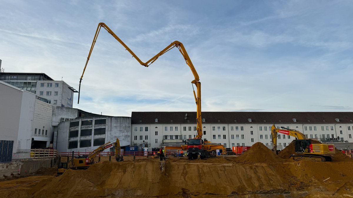 Parallel dazu entwickeln sich die vorbereitenden Maßnahmen auf der Baustelle sichtbar weiter. Für den demnächst anstehenden Start der Gründungsarbeiten wurde am 2. Dezember auf einer rund 1.000 Quadratmeter großen Fläche die Sauberkeitsschicht aus Beton gegossen.
